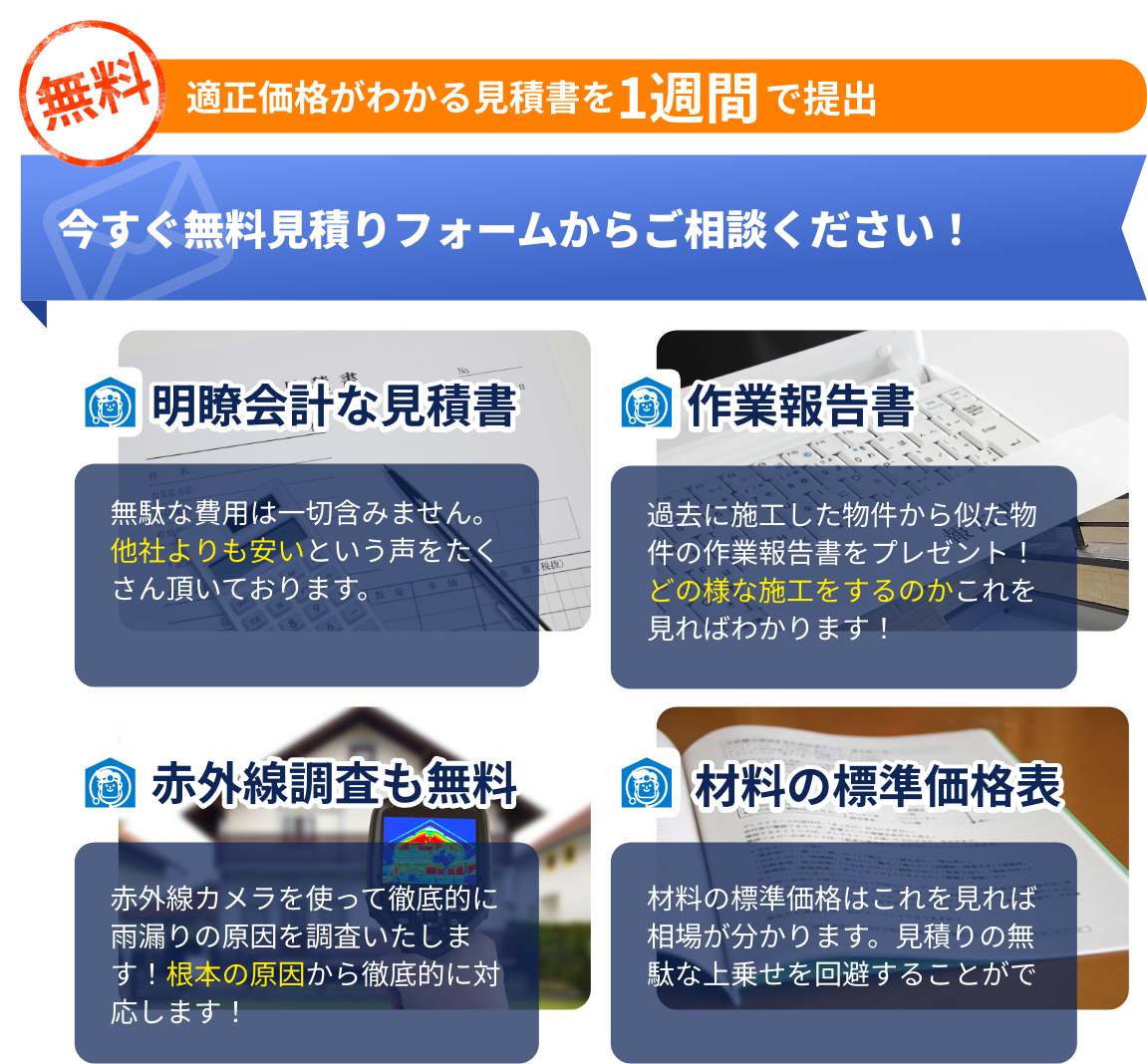 お家のトラブルレスキューは自社施工なので、費用にも絶対的な自信があります!