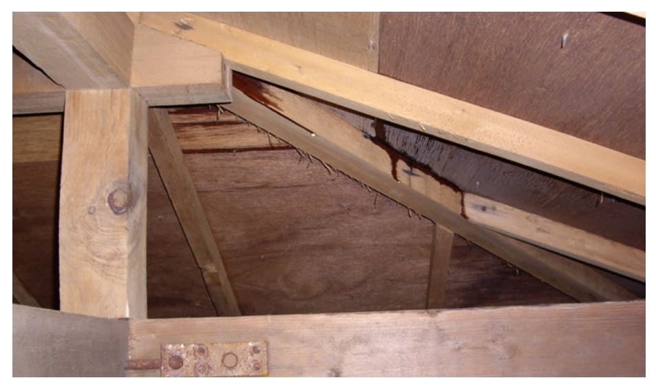 雨漏りを放っておくと、柱や屋根・床などの木部の腐食により屋根が落ちてきたり柱がもろくな