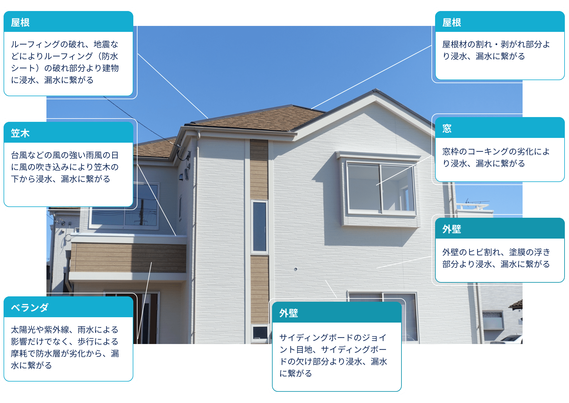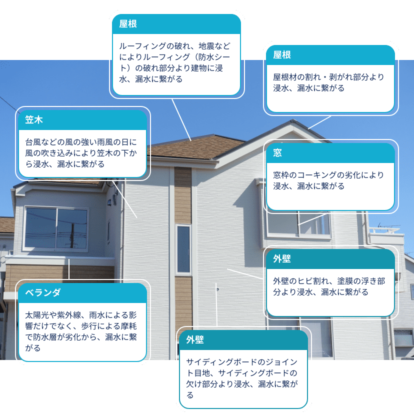 り家が崩れるなど、二次災害が発生する原因となり非常な危険な状態になります。雨漏りを発見