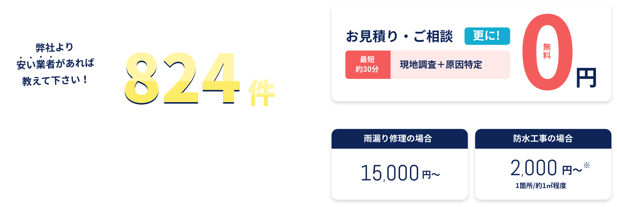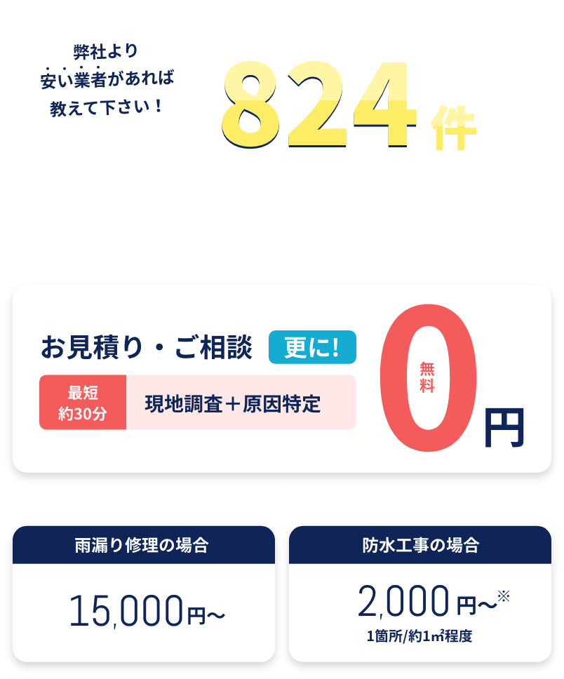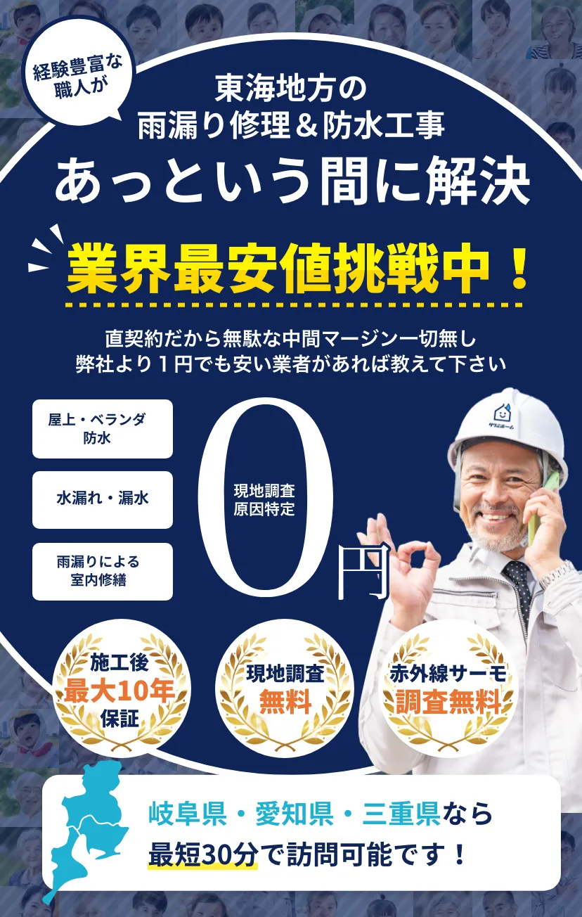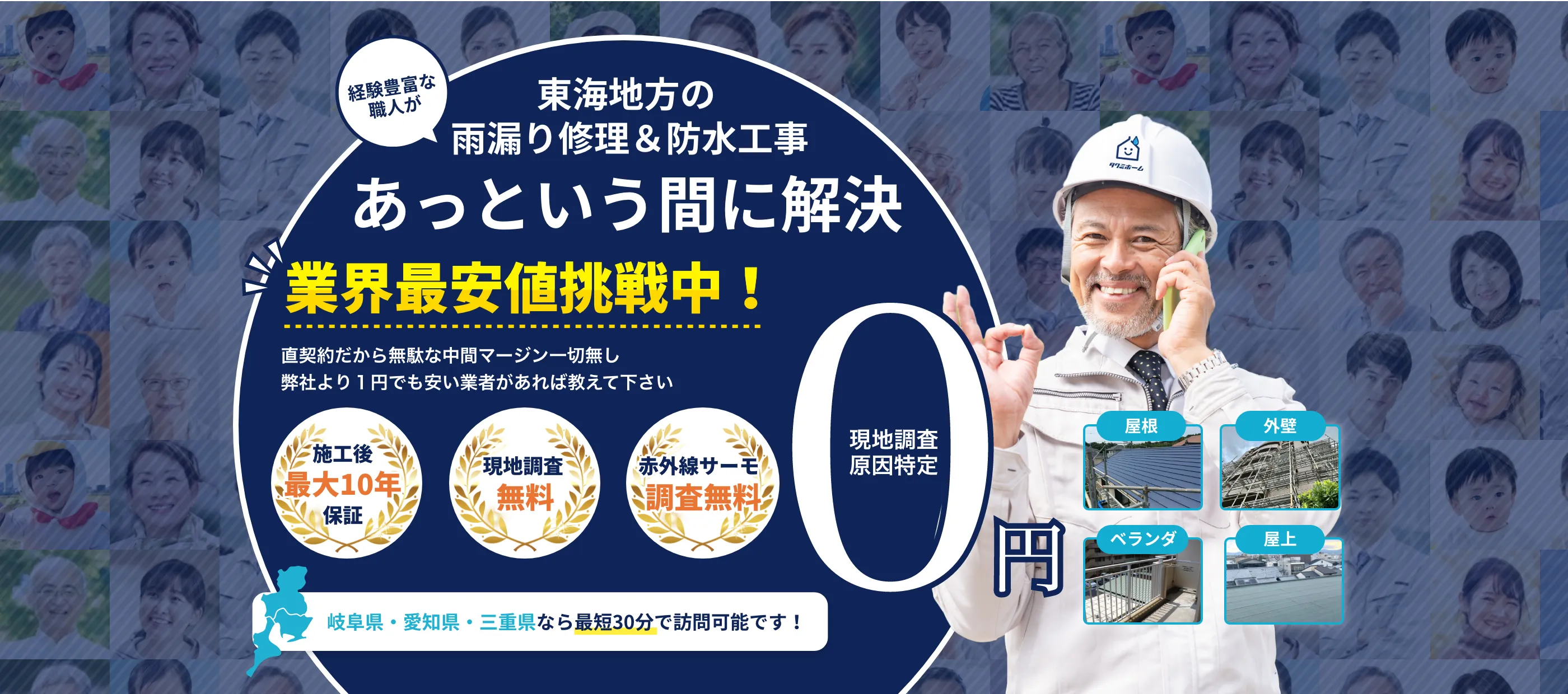 他社施工箇所からによる雨漏りの場合【保証期間内】かご確認下さい。【保証期間内】の場合の【現地調査・原因特定】は有償(税込¥35,000)での対応となります。保証期間内の場合は、まずは施工会社にご相談をお勧めいたします。