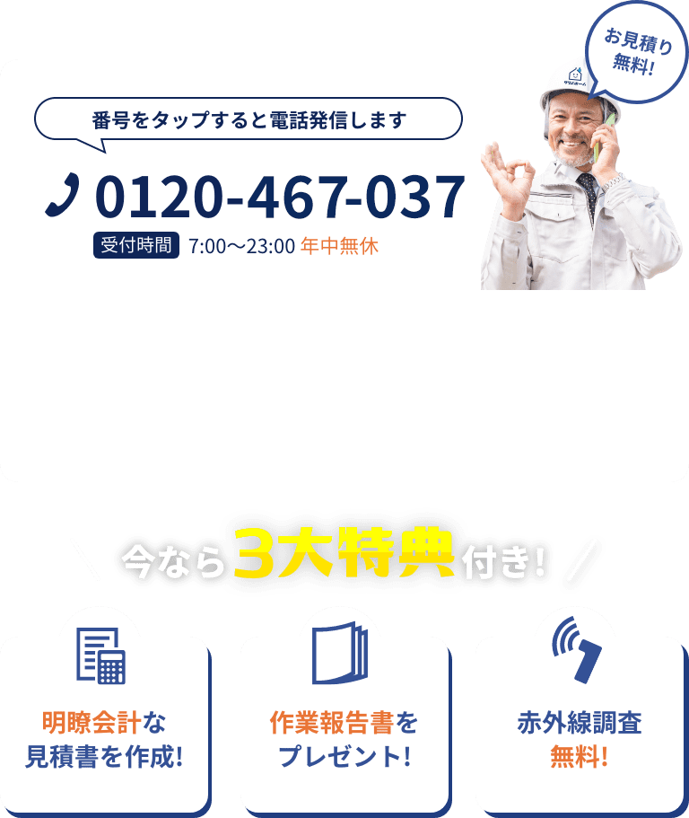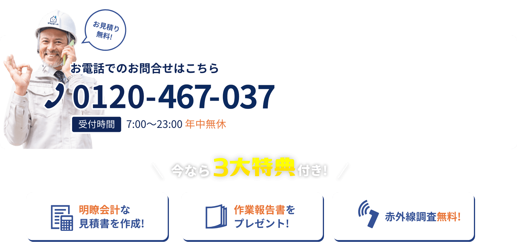 見積もりだけの場合、料金は一切頂きません!見積もりにご納得された上で作業させていただきますので、安心してご相談下さい!