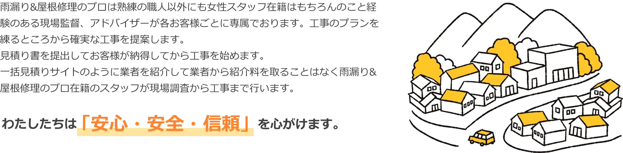 お家のトラブルレスキューでは詳細な見積書を作成しておりますので、無駄な価格上乗せをしないことをお約束いたします。